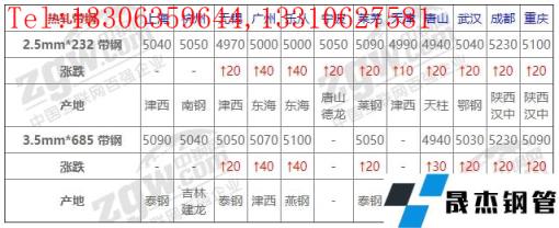 全國(guó)12個(gè)主要市場(chǎng)2.5mm*232 帶鋼平均價(jià)格5042元/噸,較上個(gè)交易日上調(diào)19元/噸。