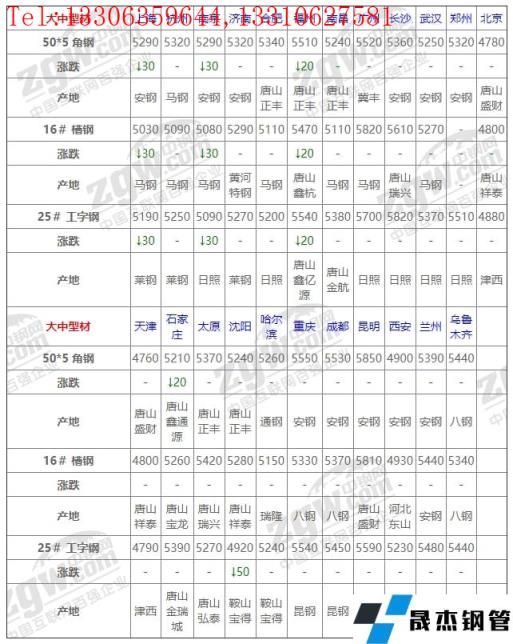 全國22個主要市場16# 槽鋼平均價格5264元/噸,較上個交易日下調4元/噸。