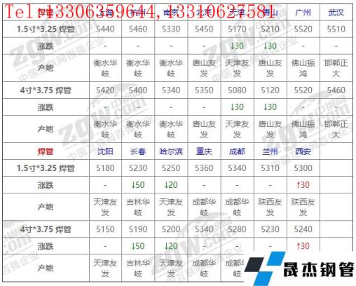 全國15個主要市場1.5寸*3.25 焊管平均價格5337元/噸,較上個交易日下調7元/噸。