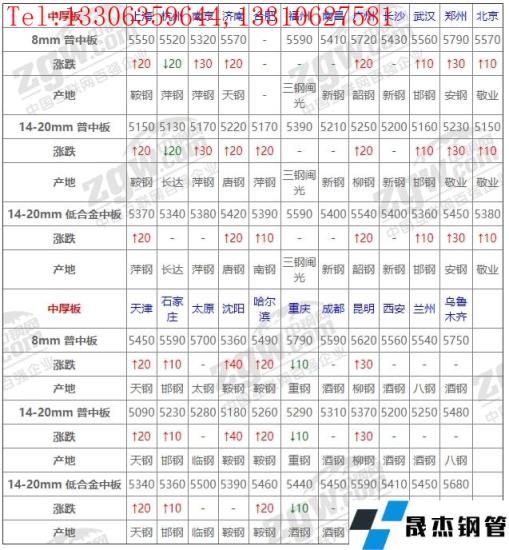 全國23個(gè)主要市場14-20mm 低合金中板平均價(jià)格5439元/噸,較上個(gè)交易日上調(diào)12元/噸。